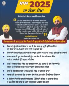 ਚੰਡੀਗੜ੍ਹ: ਮੁੱਖ ਮੰਤਰੀ ਸ. ਭਗਵੰਤ ਸਿੰਘ ਮਾਨ ਦੀ ਅਗਵਾਈ ਵਾਲੀ ਪੰਜਾਬ ਸਰਕਾਰ ਦੀਆਂ ਪਹਿਲਕਦਮੀਆਂ ਸਦਕਾ ਸਾਲ 2025 ਵਿੱਚ ਪੰਜਾਬ ਦੇ ਖੇਤੀਬਾੜੀ ਖੇਤਰ ਵਿੱਚ ਸਕਾਰਾਤਮਕ ਬਦਲਾਅ ਆਏ ਹਨ। ਇਸ ਸਾਲ ਸੂਬਾ ਸਰਕਾਰ ਵੱਲੋਂ ਗੰਨੇ ਦੀ ਫ਼ਸਲ ਦੇ ਭਾਅ ਵਿੱਚ ਕੀਤੇ ਰਿਕਾਰਡ ਵਾਧੇ, ਫਸਲੀ ਵਿਭਿੰਨਤਾ ਮੁਹਿੰਮ ਅਤੇ ਟਿਕਾਊ ਅਭਿਆਸਾਂ ਪ੍ਰਤੀ ਦ੍ਰਿੜ੍ਹ ਵਚਨਬੱਧਤਾ ਸਦਕਾ ਸੂਬੇ ਵਿੱਚ ਖੇਤੀ ਖੁਸ਼ਹਾਲੀ ਲਈ ਇੱਕ ਨਵਾਂ ਮੀਲ ਪੱਥਰ ਸਥਾਪਤ ਕੀਤਾ ਗਿਆ ਹੈ।