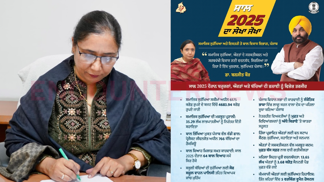 ਚੰਡੀਗੜ੍ਹ: ਮੁੱਖ ਮੰਤਰੀ ਸ. ਭਗਵੰਤ ਸਿੰਘ ਮਾਨ ਦੀ ਅਗਵਾਈ ਹੇਠ ਪੰਜਾਬ ਸਰਕਾਰ ਵੱਲੋਂ ਸਮਾਜ ਦੇ ਹਰ ਵਰਗ ਦੀ ਭਲਾਈ ਲਈ ਨਿਰੰਤਰ ਲੋਕ-ਪੱਖੀ ਨੀਤੀਆਂ ਲਾਗੂ ਕੀਤੀਆਂ ਜਾ ਰਹੀਆਂ ਹਨ। ਬਜ਼ੁਰਗਾਂ, ਔਰਤਾਂ, ਬੱਚਿਆਂ ਅਤੇ ਦਿਵਿਆਂਗਜਨਾਂ ਦੀ ਸਮਾਜਿਕ ਅਤੇ ਆਰਥਿਕ ਸੁਰੱਖਿਆ ਨੂੰ ਯਕੀਨੀ ਬਣਾਉਣ ਲਈ ਸਾਲ 2025 (ਵਿੱਤੀ ਸਾਲ 2025-26) ਦੌਰਾਨ ਕਈ ਇਤਿਹਾਸਕ ਪਹਿਲਕਦਮੀਆਂ ਕੀਤੀਆਂ ਗਈਆਂ ਹਨ। ਇਹ ਪ੍ਰਗਟਾਵਾ ਸਮਾਜਿਕ ਸੁਰੱਖਿਆ, ਇਸਤਰੀ ਅਤੇ ਬਾਲ ਵਿਕਾਸ ਮੰਤਰੀ ਡਾ. ਬਲਜੀਤ ਕੌਰ ਨੇ ਕੀਤਾ।