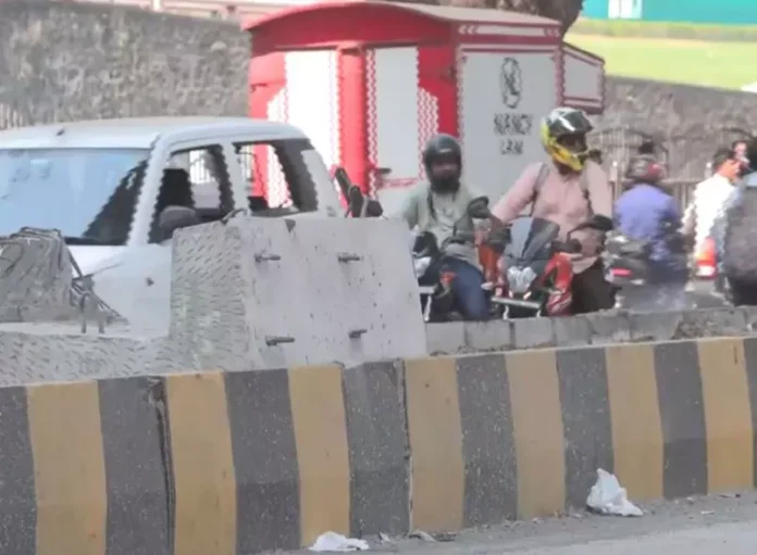 ਮੁੰਬਈ :- ਮੁੰਬਈ ਦੇ ਮੁਲੁੰਡ (ਪੱਛਮੀ) ਇਲਾਕੇ ਵਿੱਚ ਸ਼ਨੀਵਾਰ ਦੁਪਹਿਰ ਉਸ ਵੇਲੇ ਹੜਕੰਪ ਮਚ ਗਿਆ ਜਦੋਂ ਐਲਬੀਐਸ ਰੋਡ ਉੱਤੇ ਤਿਆਰ ਹੋ ਰਹੇ ਮੈਟਰੋ ਪ੍ਰੋਜੈਕਟ ਦੇ ਥੰਮ੍ਹ ਤੋਂ ਸੀਮੈਂਟ ਦਾ ਵੱਡਾ ਟੁਕੜਾ ਅਚਾਨਕ ਟੁੱਟ ਕੇ ਸੜਕ ‘ਤੇ ਆ ਡਿੱਗਿਆ। ਇਸ ਦੌਰਾਨ ਹੇਠਾਂ ਲੰਘ ਰਹੇ ਵਾਹਨਾਂ ਵਿੱਚ ਅਫ਼ਰਾਤਫ਼ਰੀ ਮਚ ਗਈ ਅਤੇ ਇੱਕ ਆਟੋ-ਰਿਕਸ਼ਾ ਸਿੱਧਾ ਮਲਬੇ ਦੀ ਚਪੇਟ ਵਿੱਚ ਆ ਗਿਆ।