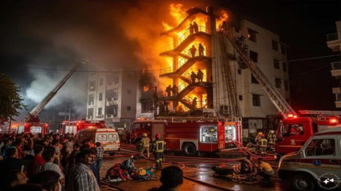 ਗਾਜ਼ੀਆਬਾਦ :- ਗਾਜ਼ੀਆਬਾਦ ਦੇ ਖੋਡਾ ਖੇਤਰ ਵਿੱਚ ਦੇਰ ਰਾਤ ਇੱਕ ਪੰਜ ਮੰਜ਼ਿਲਾ ਇਮਾਰਤ ਵਿੱਚ ਅਚਾਨਕ ਅੱਗ ਭੜਕ ਉੱਠੀ, ਜਿਸ ਨਾਲ ਸੌਂਦੇ ਪਏ ਪਰਿਵਾਰ ਘਬਰਾਹਟ ਵਿੱਚ ਘਰਾਂ ਤੋਂ ਬਾਹਰ ਨਿਕਲਣ ਲੱਗ ਪਏ। ਅੱਗ ਦੀ ਸ਼ੁਰੂਆਤ ਇਮਾਰਤ ਦੀ ਜ਼ਮੀਨੀ ਮੰਜ਼ਿਲ ਤੋਂ ਹੋਣ ਦੀ ਜਾਣਕਾਰੀ ਮਿਲੀ ਹੈ। ਕੁਝ ਹੀ ਪਲਾਂ ਵਿੱਚ ਧੂੰਏਂ ਨੇ ਸਾਰੇ ਹਿੱਸੇ ਨੂੰ ਆਪਣੀ ਲਪੇਟ ਵਿੱਚ ਲੈ ਲਿਆ, ਜਿਸ ਕਾਰਨ ਉੱਪਰਲੀਆਂ ਮੰਜ਼ਿਲਾਂ ‘ਚ ਰਹਿੰਦੇ ਲੋਕਾਂ ਲਈ ਹਾਲਾਤ ਚੁਣੌਤੀਪੂਰਨ ਬਣ ਗਏ।