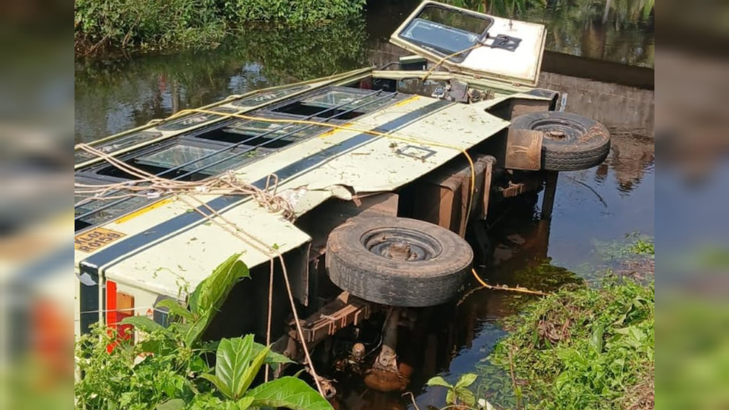 ਕੇਰਲ :- ਕੇਰਲ ਦੇ ਤਿਰੂਵਨੰਤਪੁਰਮ ਜ਼ਿਲ੍ਹੇ ਦੇ ਮਾਰਯਾਮੁਤਮ ਇਲਾਕੇ ਵਿੱਚ ਮੰਗਲਵਾਰ ਸਵੇਰੇ ਇਕ ਸਕੂਲ ਬੱਸ ਅਚਾਨਕ ਬੇਕਾਬੂ ਹੋ ਕੇ ਸੜਕ ਕਿਨਾਰੇ ਬਣੀ ਨਹਿਰ ਵਿੱਚ ਜਾ ਪਲਟੀ। ਬੱਸ ਵਿੱਚ 21 ਵਿਦਿਆਰਥੀ ਸਵਾਰ ਸਨ ਜੋ ਐੱਲ.ਕੇ.ਜੀ. ਤੋਂ ਚੌਥੀ ਜਮਾਤ ਤੱਕ ਪੜ੍ਹਦੇ ਹਨ। ਹਾਦਸਾ ਕਰੀਬ ਸਵੇਰੇ ਸਵਾ ਅੱਠ ਤੋਂ ਨੌ ਵਜੇ ਦਰਮਿਆਨ ਵਾਪਰਿਆ ਜਦੋਂ ਬੱਚਿਆਂ ਨੂੰ ਸਕੂਲ ਲਿਜਾਇਆ ਜਾ ਰਿਹਾ ਸੀ।