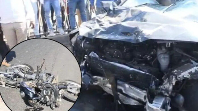 ਮੱਧ ਪ੍ਰਦੇਸ਼ :- ਮੱਧ ਪ੍ਰਦੇਸ਼ ਦੇ ਰੀਵਾ ਜ਼ਿਲ੍ਹੇ ਵਿੱਚ ਇੱਕ ਸੜਕ ਹਾਦਸਾ ਵਾਪਰਿਆ, ਜਿੱਥੇ ਤੇਜ਼ ਰਫ਼ਤਾਰ ਲਗਜ਼ਰੀ ਔਡੀ ਕਾਰ ਦੀ ਟੱਕਰ ਨਾਲ ਮੋਟਰਸਾਈਕਲ ਸਵਾਰ ਤਿੰਨ ਵਿਅਕਤੀਆਂ ਦੀ ਮੌਕੇ ’ਤੇ ਹੀ ਮੌਤ ਹੋ ਗਈ। ਇਹ ਹਾਦਸਾ ਉਸ ਸਮੇਂ ਵਾਪਰਿਆ, ਜਦੋਂ ਮ੍ਰਿਤਕ ਇੱਕ ਪਰਿਵਾਰਕ ਖੁਸ਼ੀ ਨਾਲ ਜੁੜੇ ਕੰਮ ਲਈ ਨਿਕਲੇ ਹੋਏ ਸਨ।