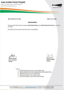 ਆਪ ਦਾ ਵਿਸ਼ਵਾਸ ਹੈ ਕਿ ਬਲਤੇਜ ਪੰਨੂ ਦੀ ਤਜਰਬੇਦਾਰੀ ਅਤੇ ਸੰਗਠਨਾਤਮਕ ਯੋਗਤਾਵਾਂ ਨਾਲ ਸੂਬੇ ਵਿੱਚ ਪਾਰਟੀ ਦਾ ਢਾਂਚਾ ਹੋਰ ਮਜ਼ਬੂਤ ਹੋਵੇਗਾ ਅਤੇ ਮੈਦਾਨੀ ਕੰਮ ਵਿੱਚ ਵੀ ਤੇਜ਼ੀ ਆਵੇਗੀ।