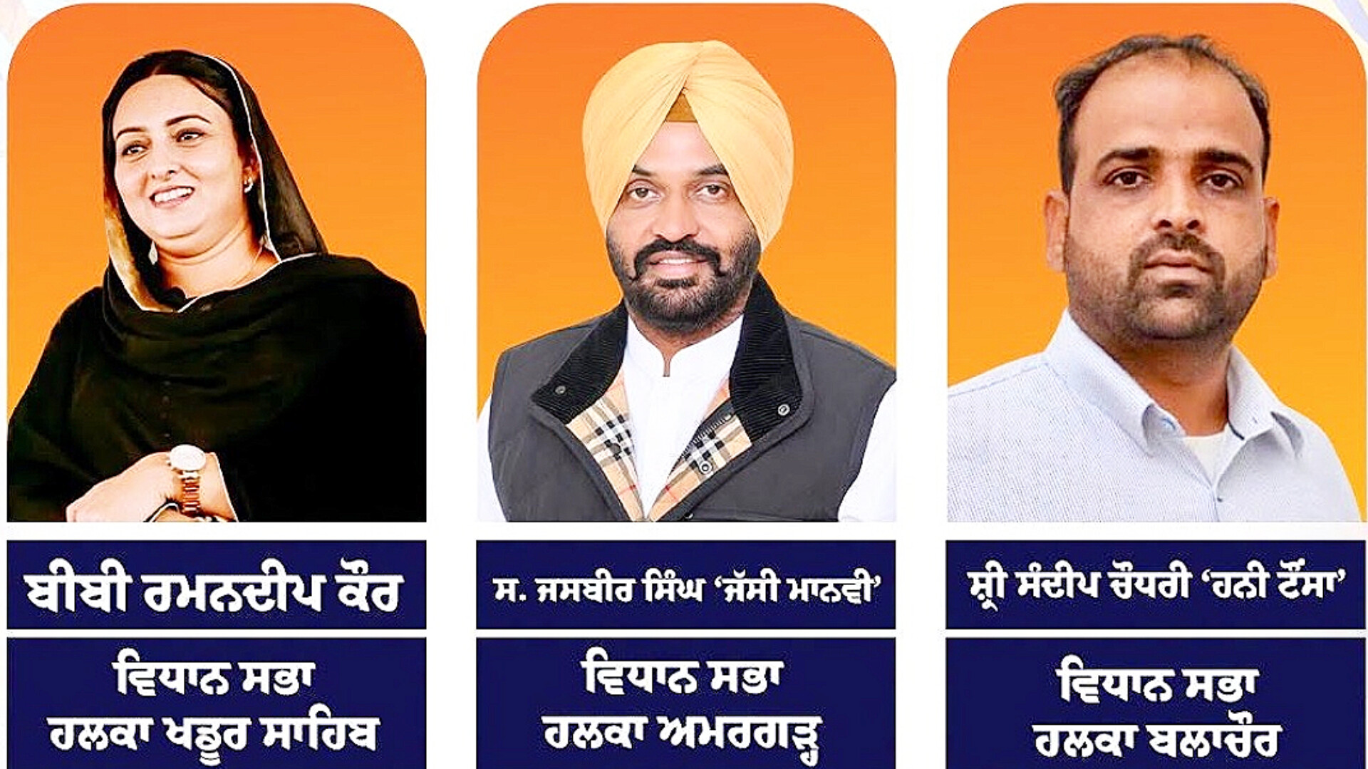 ਇਸ ਕੜੀ ਤਹਿਤ ਖਡੂਰ ਸਾਹਿਬ ਹਲਕੇ ਦੀ ਜ਼ਿੰਮੇਵਾਰੀ ਬੀਬੀ ਰਮਨਦੀਪ ਕੌਰ ਨੂੰ ਸੌਂਪੀ ਗਈ ਹੈ। ਇਸੇ ਤਰ੍ਹਾਂ ਅਮਰਗੜ੍ਹ ਹਲਕੇ ਵਿੱਚ ਜਸਬੀਰ ਸਿੰਘ ਜੱਸੀ ਉਰਫ ਮਾਵੀ ਨੂੰ ਇੰਚਾਰਜ ਬਣਾਇਆ ਗਿਆ ਹੈ, ਜਦਕਿ ਦੁਆਬਾ ਖੇਤਰ ਦੇ ਬਲਾਚੌਰ ਹਲਕੇ ਲਈ ਯੂਥ ਆਗੂ ਸੰਦੀਪ ਚੌਧਰੀ ਟੌਸਾ ਨੂੰ ਚੁਣਿਆ ਗਿਆ ਹੈ।