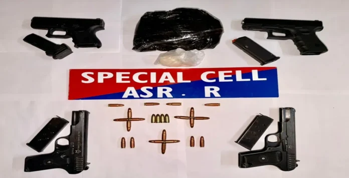 ਅੰਮ੍ਰਿਤਸਰ :- ਅੰਮ੍ਰਿਤਸਰ ਦਿਹਾਤੀ ਪੁਲਿਸ ਨੇ ਹਥਿਆਰਾਂ ਅਤੇ ਨਸ਼ਿਆਂ ਦੀ ਤਸਕਰੀ ਖ਼ਿਲਾਫ਼ ਵੱਡੀ ਸਫ਼ਲਤਾ ਹਾਸਲ ਕਰਦਿਆਂ ਦੋ ਨੌਜਵਾਨਾਂ ਨੂੰ ਗ੍ਰਿਫ਼ਤਾਰ ਕਰਕੇ ਵਿਦੇਸ਼ੀ ਅਤੇ ਦੇਸੀ ਪਿਸਤੌਲਾਂ ਸਮੇਤ ਭਾਰੀ ਮਾਤਰਾ ਵਿੱਚ ਨਸ਼ੀਲੇ ਪਦਾਰਥ ਬਰਾਮਦ ਕੀਤੇ ਹਨ। ਇਸ ਕਾਰਵਾਈ ਨਾਲ ਸਰਹੱਦੀ ਇਲਾਕੇ ਵਿੱਚ ਸਰਗਰਮ ਗੈਰਕਾਨੂੰਨੀ ਨੈੱਟਵਰਕ ਨੂੰ ਵੱਡਾ ਝਟਕਾ ਲੱਗਿਆ ਹੈ।