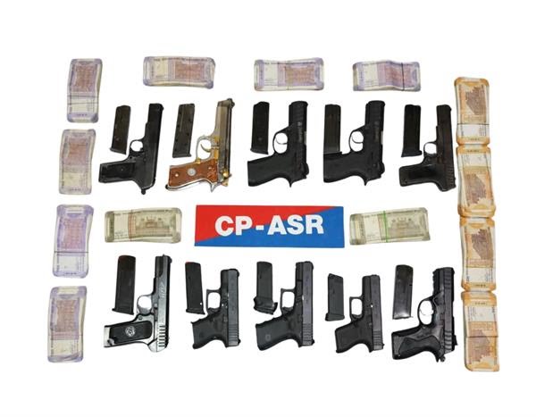 ਅੰਮ੍ਰਿਤਸਰ :- ਅੰਮ੍ਰਿਤਸਰ ਕਮਿਸ਼ਨਰੇਟ ਪੁਲਸ ਨੇ ਇੱਕ ਸੰਗਠਿਤ ਹਥਿਆਰਾਂ ਅਤੇ ਹਵਾਲਾ ਨੈੱਟਵਰਕ ਦਾ ਪਰਦਾਫਾਸ਼ ਕਰਦੇ ਹੋਏ ਤਿੰਨ ਮੁਲਜ਼ਮਾਂ ਨੂੰ ਗ੍ਰਿਫ਼ਤਾਰ ਕੀਤਾ। ਇਹ ਕਾਰਵਾਈ ਖੁਫੀਆ ਜਾਣਕਾਰੀ ਦੇ ਆਧਾਰ ‘ਤੇ ਕੀਤੀ ਗਈ। ਗ੍ਰਿਫ਼ਤਾਰ ਕੀਤੇ ਗਏ ਮੁਲਜ਼ਮਾਂ ਕੋਲੋਂ ਕੁੱਲ 10 ਆਧੁਨਿਕ ਹਥਿਆਰ ਅਤੇ 2.5 ਲੱਖ ਰੁਪਏ ਹਵਾਲਾ ਰਾਸ਼ੀ ਬਰਾਮਦ ਕੀਤੀ ਗਈ।
