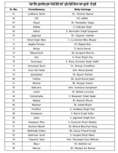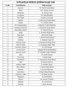 ਹਰੇਕ ਹਲਕੇ ਲਈ ‘ਪ੍ਰਦੇਸ਼ ਰੈਲੀ ਵਿਧਾਨ ਸਭਾ ਇੰਚਾਰਜ’ ਤਾਇਨਾਤ