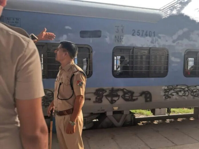 ਜਲੰਧਰ ਪਹੁੰਚਣ ‘ਤੇ ਟਰੇਨ ਨੂੰ ਰੋਕਿਆ ਗਿਆ ਅਤੇ ਪੁਲਸ ਨੇ ਕੋਚ ‘ਤੇ ਲਿਖੇ ਨਾਅਰੇ ਕਾਲੇ ਪੇਂਟ ਨਾਲ ਮਿਟਾਏ। ਮਿਲੀ ਜਾਣਕਾਰੀ ਅਨੁਸਾਰ, ਮੋਟਰ ਨੰਬਰ 62 ਦੇ ਗੇਟਮੈਨ ਰਣਜੀਤ ਕੁਮਾਰ ਨੇ ਤੁਰੰਤ ਅਧਿਕਾਰੀਆਂ ਨੂੰ ਘਟਨਾ ਬਾਰੇ ਸੂਚਿਤ ਕੀਤਾ। ਇਸ ਤੋਂ ਬਾਅਦ ਡਿਪਟੀ ਪੁਲਸ ਅਧਿਕਾਰੀ ਅਤੇ ਆਰ. ਪੀ. ਐੱਫ਼. ਕਰਮਚਾਰੀਆਂ ਨੇ ਤੁਰੰਤ ਕਾਰਵਾਈ ਕੀਤੀ ਅਤੇ ਮਾਮਲੇ ਨੂੰ ਸੰਭਾਲਿਆ।