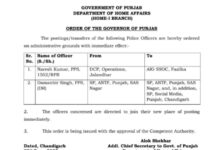 ਜਲੰਧਰ :- ਪੰਜਾਬ ਪੁਲਿਸ ਵਿਭਾਗ ਵਿੱਚ ਇੱਕ ਵੱਡਾ ਪ੍ਰਸ਼ਾਸਕੀ ਕਦਮ ਚੁੱਕਦੇ ਹੋਏ ਸਰਕਾਰ ਵੱਲੋਂ ਜਲੰਧਰ ਦੇ ਡਿਪਟੀ ਕਮਿਸ਼ਨਰ ਆਫ਼ ਪੁਲਿਸ ਨਰੇਸ਼ ਡੋਗਰਾ ਦਾ ਤਬਾਦਲਾ ਕਰ ਦਿੱਤਾ ਗਿਆ ਹੈ। ਸਰਕਾਰੀ ਹੁਕਮਾਂ ਅਨੁਸਾਰ ਹੁਣ ਨਰੇਸ਼ ਡੋਗਰਾ ਨੂੰ ਸਟੇਟ ਸਪੈਸ਼ਲ ਆਪਰੇਸ਼ਨ ਸੈਲ (SSOC) ਫ਼ਜ਼ਿਲਕਾ ਵਿੱਚ ਐਸਿਸਟੈਂਟ ਇੰਸਪੈਕਟਰ ਜਨਰਲ (AIG) ਦੇ ਅਹੁਦੇ ‘ਤੇ ਤਾਇਨਾਤ ਕੀਤਾ ਗਿਆ ਹੈ। ਜਲੰਧਰ ‘ਚ … Continue reading ਪੰਜਾਬ ਪੁਲਿਸ ‘ਚ ਅਹਿਮ ਤਬਾਦਲਾ, ਜਲੰਧਰ ਡੀਸੀਪੀ ਨਰੇਸ਼ ਡੋਗਰਾ ਨੂੰ ਮਿਲੀ ਨਵੀਂ ਜ਼ਿੰਮੇਵਾਰੀ