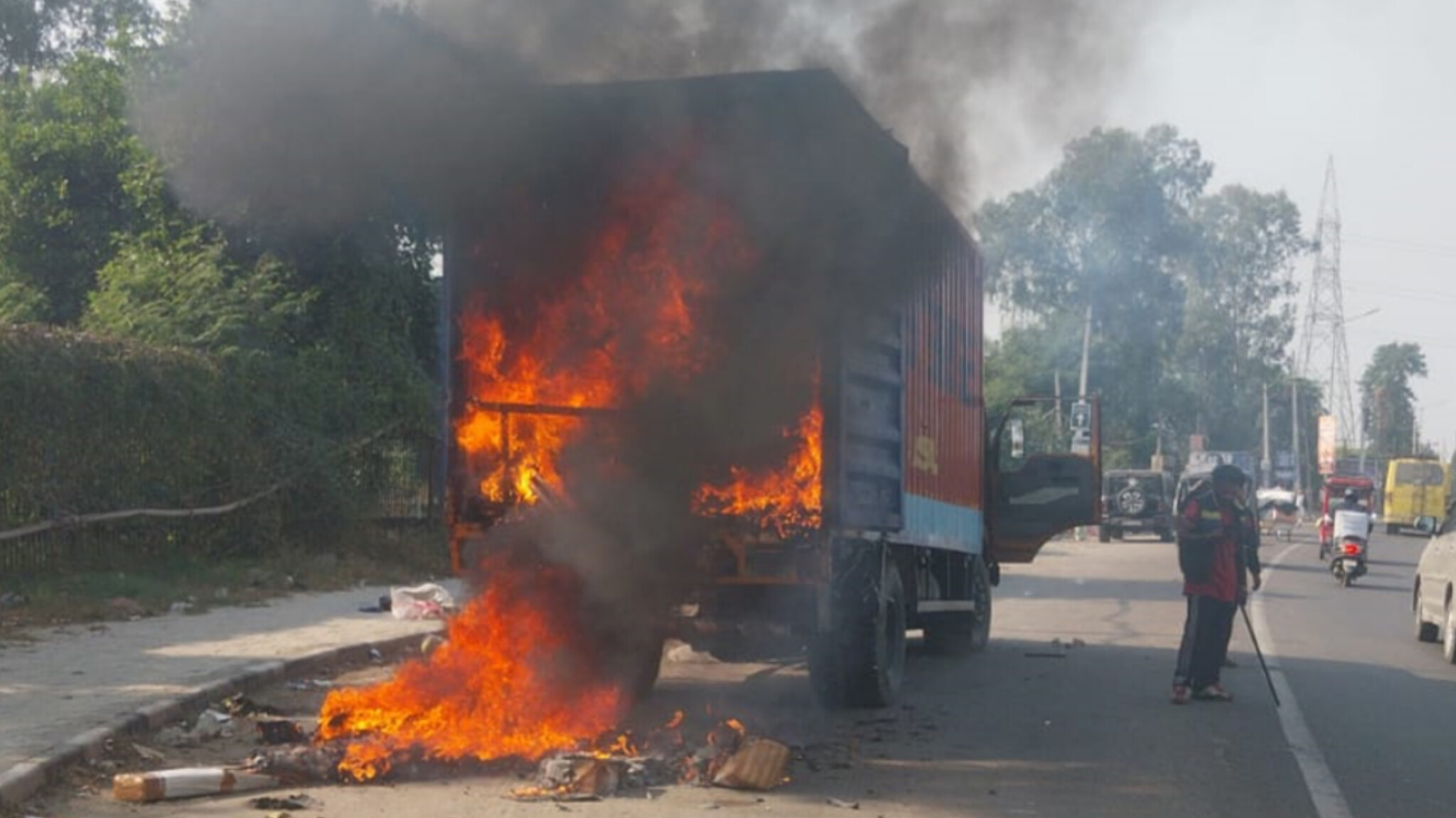 ਟ੍ਰੈਫ਼ਿਕ ਵਿਚੋਂ ਲੰਘ ਰਹੇ ਲੋਕਾਂ ਨੇ ਜ਼ਿੰਮੇਵਾਰੀ ਨਾਲ ਖਤਰਾ ਭਾਂਪਦਿਆਂ ਡਰਾਈਵਰ ਨੂੰ ਸਮੇਂ ‘ਤੇ ਚੇਤਾਵਨੀ ਦਿੱਤੀ। ਇਸ ਕਾਰਨ ਡਰਾਈਵਰ ਟਰੱਕ ਤੋਂ ਸੁਰੱਖਿਅਤ ਬਾਹਰ ਨਿਕਲ ਗਿਆ।