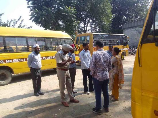 ਮਲੇਰਕੋਟਲਾ :- ਜ਼ਿਲ੍ਹੇ ‘ਚ ਅੱਜ ਸਵੇਰੇ ਸਕੂਲੀ ਬੱਚਿਆਂ ਦੀ ਸੁਰੱਖਿਆ ਨੂੰ ਲੈ ਕੇ ਪ੍ਰਸ਼ਾਸਨ ਵੱਲੋਂ ਵੱਡੀ ਕਾਰਵਾਈ ਕੀਤੀ ਗਈ। ਡਿਪਟੀ ਕਮਿਸ਼ਨਰ ਵਿਰਾਜ ਐਸ. ਤਿੜਕੇ ਦੇ ਨਿਰਦੇਸ਼ਾਂ ਅਨੁਸਾਰ, ਬਾਲ ਸੁਰੱਖਿਆ ਵਿਭਾਗ ਨੇ ‘ਸੇਫ਼ ਸਕੂਲ ਵਾਹਨ ਪਾਲਿਸੀ’ ਤਹਿਤ ਕਈ ਸਕੂਲਾਂ ਦੀਆਂ ਬੱਸਾਂ ਤੇ ਵੈਨਾਂ ਦੀ ਅਚਾਨਕ ਜਾਂਚ ਕੀਤੀ।