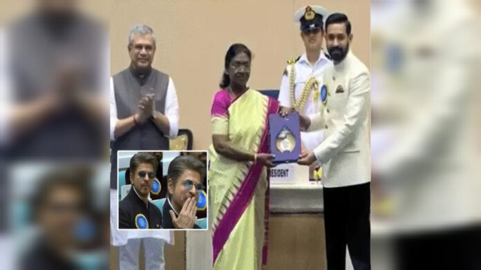 ਨਵੀਂ ਦਿੱਲੀ :- ਮੰਗਲਵਾਰ ਨੂੰ ਨਵੀਂ ਦਿੱਲੀ ਦੇ ਵਿਗਿਆਨ ਭਵਨ ਵਿੱਚ 71ਵਾਂ ਨੈਸ਼ਨਲ ਫਿਲਮ ਐਵਾਰਡ ਸਮਾਰੋਹ ਮਨਾਇਆ ਗਿਆ। ਇਸ ਸਮਾਰੋਹ ਦੌਰਾਨ ਰਾਸ਼ਟਰਪਤੀ ਦ੍ਰੋਪਦੀ ਮੁਰਮੂ ਨੇ ਬਾਲੀਵੁੱਡ ਸਟਾਰ ਸ਼ਾਹਰੁਖ ਖਾਨ ਨੂੰ ਫਿਲਮ ਜਵਾਨ ਲਈ ਬੈਸਟ ਐਕਟਰ ਦਾ ਸਨਮਾਨ ਦਿੱਤਾ। ਮੰਚ ’ਤੇ ਹੱਥ ਜੋੜ ਕੇ ਪਹੁੰਚਦੇ ਹੋਏ ਸ਼ਾਹਰੁਖ ਖਾਨ ਨੇ ਭਾਵੁਕਤਾ ਨਾਲ ਆਪਣਾ ਧੰਨਵਾਦ ਪ੍ਰਗਟ ਕੀਤਾ। ਭਵਨ ਅੰਦਰ ਉਨ੍ਹਾਂ ਦੇ ਸਨਮਾਨ ’ਤੇ ਤਾੜੀਆਂ ਨਾਲ ਜੋਸ਼ ਭਰਪੂਰ ਮਾਹੌਲ ਬਣ ਗਿਆ। ਇਹ ਸ਼ਾਹਰੁਖ ਖਾਨ ਦਾ ਪਹਿਲਾ ਨੈਸ਼ਨਲ ਐਵਾਰਡ ਹੈ।