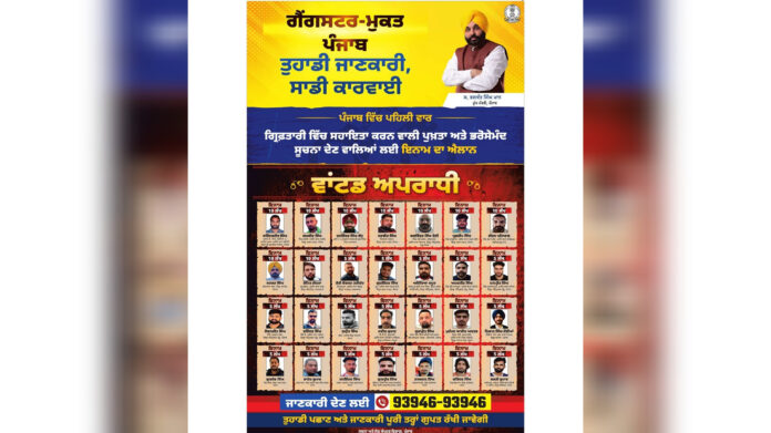 ਚੰਡੀਗੜ੍ਹ :- ਪੰਜਾਬ ਵਿੱਚ ਕਾਨੂੰਨ-ਵਿਵਸਥਾ ਨੂੰ ਮਜ਼ਬੂਤ ਕਰਨ ਲਈ ਸਰਕਾਰ ਹੁਣ ਹੋਰ ਸਖ਼ਤ ਰਵੱਈਆ ਅਪਣਾ ਰਹੀ ਹੈ। ਗੈਂਗਸਟਰਾਂ ਅਤੇ ਨਸ਼ਾ ਤਸਕਰੀ ਵਿਰੁੱਧ ਚੱਲ ਰਹੀ ਮੁਹਿੰਮ ਨੂੰ ਤੇਜ਼ ਕਰਦਿਆਂ ਪ੍ਰਸ਼ਾਸਨ ਨੇ ਨਵਾਂ ਕਦਮ ਚੁੱਕਿਆ ਹੈ, ਜਿਸ ਦੇ ਤਹਿਤ ਮੋਸਟ ਵਾਂਟੇਡ ਅਪਰਾਧੀਆਂ ਦੀ ਪਹਿਚਾਣ ਜਨਤਾ ਸਾਹਮਣੇ ਰੱਖੀ ਗਈ ਹੈ।
