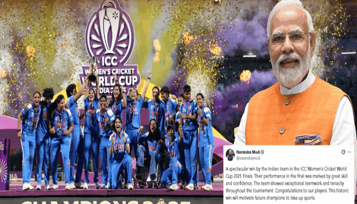 ਪ੍ਰਧਾਨ ਮੰਤਰੀ ਨਰਿੰਦਰ ਮੋਦੀ ਨੇ ਟੀਮ ਨੂੰ ਇਤਿਹਾਸਕ ਜਿੱਤ ਲਈ ਵਧਾਈ ਦਿੰਦਿਆਂ ਕਿਹਾ — “ਭਾਰਤੀ ਮਹਿਲਾ ਟੀਮ ਨੇ ਵਿਸ਼ਵ ਕੱਪ ਫਾਈਨਲ ਵਿੱਚ ਸ਼ਾਨਦਾਰ ਟੀਮ ਵਰਕ ਅਤੇ ਜਿੱਤ ਦਾ ਜਜ਼ਬਾ ਦਿਖਾਇਆ ਹੈ। ਇਹ ਇਤਿਹਾਸਿਕ ਜਿੱਤ ਭਵਿੱਖ ਦੀਆਂ ਖਿਡਾਰਣਾਂ ਲਈ ਪ੍ਰੇਰਣਾ ਬਣੇਗੀ।