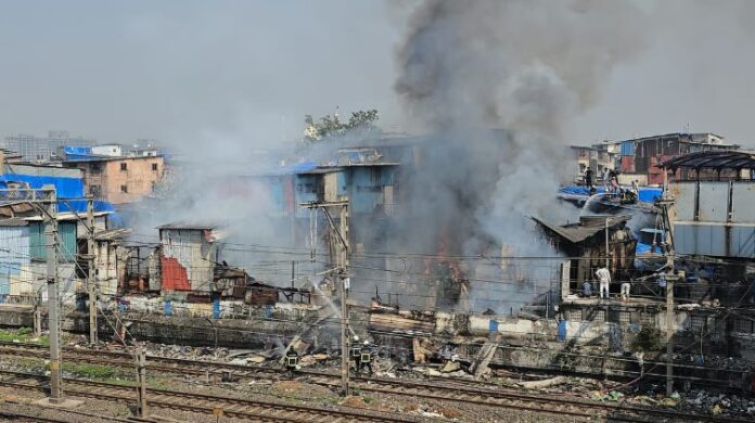 ਮੁੰਬਈ :- ਮੁੰਬਈ ਦੇ ਮਾਹਿਮ ਸਟੇਸ਼ਨ ਨੇੜੇ ਸ਼ਾਮ ਦੇ ਸਮੇਂ ਅਚਾਨਕ ਭਿਆਨਕ ਅੱਗ ਲੱਗਣ ਨਾਲ ਇਲਾਕੇ ਵਿੱਚ ਹੜਕੰਪ ਮਚ ਗਿਆ। ਨਵਰੰਗ ਕੰਪਾਊਂਡ, ਜੋ ਸਾਇਨ–ਮਾਹਿਮ ਲਿੰਕ ਰੋਡ ਦੇ ਨੇੜੇ ਸਥਿਤ ਹੈ, ਅੱਗ ਦੀਆਂ ਲਪਟਾਂ ਨਾਲ ਕੁਝ ਹੀ ਮਿੰਟਾਂ ਵਿੱਚ ਘਿਰ ਗਿਆ। ਤੇਜ਼ੀ ਨਾਲ ਉੱਠਦੇ ਧੂੰਏਂ ਨੇ ਆਸ-ਪਾਸ ਦੀ ਹਵਾ ਨੂੰ ਗਾੜ੍ਹਾ ਕਰ ਦਿੱਤਾ, ਜਿਸ ਕਾਰਨ ਲੋਕਾਂ ਨੇ ਤੁਰੰਤ ਫਾਇਰ ਬ੍ਰਿਗੇਡ ਨੂੰ ਸੂਚਿਤ ਕੀਤਾ।