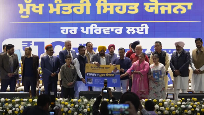 ਚੰਡੀਗੜ੍ਹ :- ਪੰਜਾਬ ਸਰਕਾਰ ਵੱਲੋਂ ਅੱਜ ਸੂਬੇ ਦੇ ਲੋਕਾਂ ਲਈ ਇੱਕ ਵੱਡੀ ਸਿਹਤ ਸੰਬੰਧੀ ਸਕੀਮ ਦੀ ਸ਼ੁਰੂਆਤ ਕਰ ਦਿੱਤੀ ਗਈ। ਮੋਹਾਲੀ ਵਿੱਚ ਆਯੋਜਿਤ ਵਿਸ਼ੇਸ਼ ਸਮਾਗਮ ਦੌਰਾਨ ਮੁੱਖ ਮੰਤਰੀ ਭਗਵੰਤ ਮਾਨ ਅਤੇ ਆਮ ਆਦਮੀ ਪਾਰਟੀ ਦੇ ਕੌਮੀ ਕਨਵੀਨਰ ਅਰਵਿੰਦ ਕੇਜਰੀਵਾਲ ਨੇ ਮੁੱਖ ਮੰਤਰੀ ਸਿਹਤ ਬੀਮਾ ਯੋਜਨਾ ਨੂੰ ਸਰਕਾਰੀ ਤੌਰ ’ਤੇ ਲਾਂਚ ਕੀਤਾ।