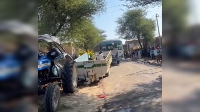 ਏਲਨਾਬਾਦ :- ਏਲਨਾਬਾਦ-ਹਨੂੰਮਾਨਗੜ੍ਹ ਰੋਡ ‘ਤੇ ਸ਼ਨੀਵਾਰ ਸਵੇਰੇ 8:30 ਵਜੇ ਇੱਕ ਭਿਆਨਕ ਸੜਕ ਹਾਦਸਾ ਹੋਇਆ। ਹਰਿਆਣਾ ਰੋਡਵੇਜ਼ ਦੀ ਬੱਸ ਨੇ ਪਿੱਛੇ ਤੋਂ ਆ ਰਹੀ ਟਰੈਕਟਰ ਟਰਾਲੀ ਨੂੰ ਟੱਕਰ ਮਾਰ ਦਿੱਤੀ। ਇਸ ਹਾਦਸੇ ਦੇ ਨਤੀਜੇ ਵਜੋਂ ਟਰਾਲੀ ਵਿੱਚ ਸਵਾਰ ਦੋ ਲੋਕਾਂ ਦੀ ਮੌਤ ਹੋ ਗਈ, ਜਦਕਿ ਸੱਤ ਹੋਰ ਲੋਕ ਜ਼ਖਮੀ ਹੋ ਗਏ। ਜ਼ਖਮੀਆਂ ਵਿੱਚੋਂ ਚਾਰ ਦੀ ਹਾਲਤ ਗੰਭੀਰ ਹੈ।