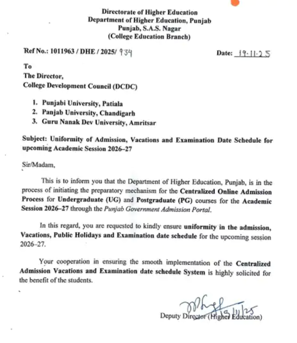 ਉੱਚ ਸਿੱਖਿਆ ਵਿਭਾਗ ਨੇ ਇਹ ਪੱਤਰ ਤਿੰਨਾਂ ਯੂਨੀਵਰਸਿਟੀਆਂ ਦੀਆਂ ਕਾਲਜ ਵਿਕਾਸ ਕੌਂਸਲਾਂ ਨੂੰ ਭੇਜ ਕੇ ਤਿਆਰੀ ਜ਼ੋਰਾਂ ‘ਤੇ ਸ਼ੁਰੂ ਕਰਨ ਦੀ ਹਦਾਇਤ ਦਿੱਤੀ ਹੈ।