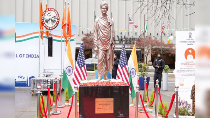 ਅਮਰੀਕਾ :- ਅਮਰੀਕਾ ਦੇ ਸ਼ਹਿਰ ਸੀਏਟਲ ਵਿੱਚ ਭਾਰਤ ਦੇ ਮਹਾਨ ਦਾਰਸ਼ਨਿਕ ਅਤੇ ਅਧਿਆਤਮਿਕ ਨੇਤਾ ਸਵਾਮੀ ਵਿਵੇਕਾਨੰਦ ਦੀ ਯਾਦ ਵਿੱਚ ਪਹਿਲੀ ਵਾਰ ਆਦਮਕਦ ਬੁੱਤ ਸਥਾਪਿਤ ਕੀਤਾ ਗਿਆ ਹੈ। ਇਹ ਬੁੱਤ ਵੈਸਟਲੇਕ ਸਕੁਏਅਰ ਵਿੱਚ ਲਗਾਇਆ ਗਿਆ ਹੈ, ਜੋ ਕਿ ਕਿਸੇ ਵੀ ਅਮਰੀਕੀ ਸ਼ਹਿਰੀ ਪ੍ਰਸ਼ਾਸਨ ਵੱਲੋਂ ਲਗਾਇਆ ਗਿਆ ਆਪਣੀ ਕਿਸਮ ਦਾ ਪਹਿਲਾ ਬੁੱਤ ਦੱਸਿਆ ਜਾ ਰਿਹਾ ਹੈ।